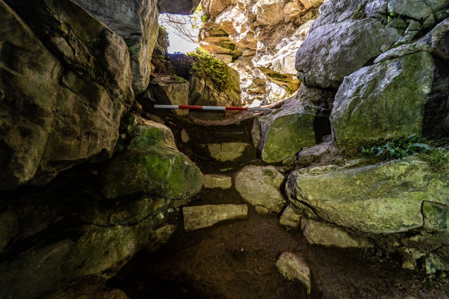 The entrance to Tormore Cave with artificlly placed steps to ease access