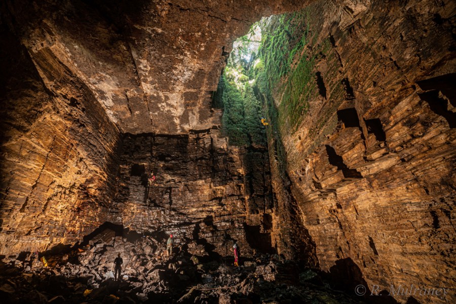 Hello all, I have been away from the website for some time now, but have not forgotten about it and plan to make updates on it in the New Year. For now all of my time for writing is still being given over to my second book. More on that later on. But for now, I am delighted to announce that I won first place in the SUI’s (Speleological Union of Ireland) photography competition for Best Irish Cave Photo, last week. This one is from the fantastic but forgotten Sulphur / Sheepfold through trip in the Dartry hills in Leitrim. Shannon Caving Group revisted it last year. It looks very small on the mobile phone, but see if you can spot all five cavers! Lit by one large Meggaflash flash bulb, one small M3 bulb and a couple of electronic flashguns.