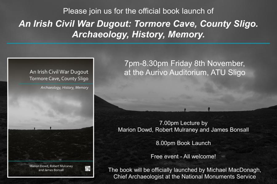 The Tormore Cave Project which, in 2022 saw the release of our book, The Six, is proud to announce the culmination of our efforts, An Irish Civil War Dugout: Tormore Cave, County Sligo – Archaeology, History, Memory. Co-authored by Marion Dowd, Robert Mulraney, and James Bonsall, the book will be launched at ATU Sligo, 8th November 2024. All welcome.