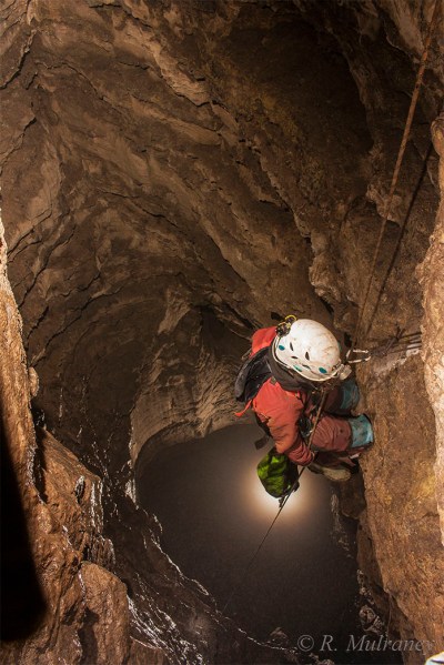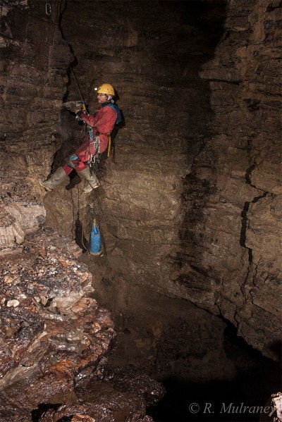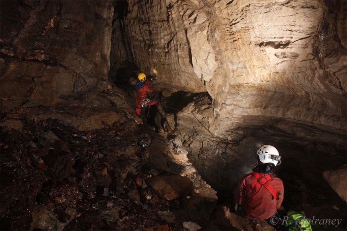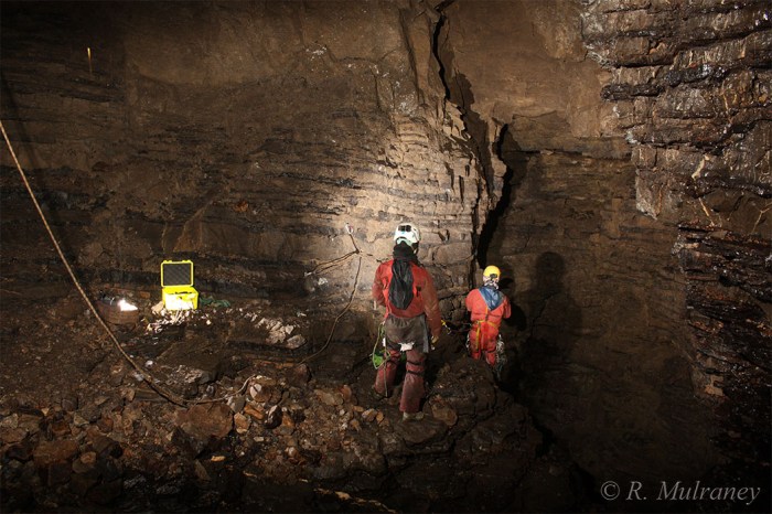 Deep Pot is located in a fault controlled rift that runs east-west. It is composed of numerous pitches and a small stream which is not always possible to avoid. In many areas the cave has very large amounts of well-beded and clean limestone, something of a rarity in Largy. After two pitches the cave then branches in two: the Window Series and the Waterfall Series. To my discredit I have not yet made it down the more complex Window Series, as I mainly visited this cave on Shannon Group trips to re-bolt the cave and to dig at the base of the Waterfall Series.