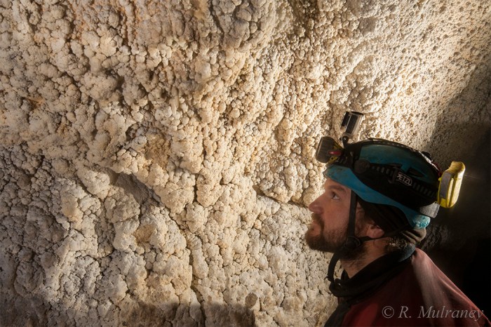‘Monday Cave’ is not the cave’s actual name. I have called it this to protect its identity as the cave has suffered from vandalism from members of the public. The cave is very accessible, and many areas of moonmilk decorated passageway have been spray-painted.
