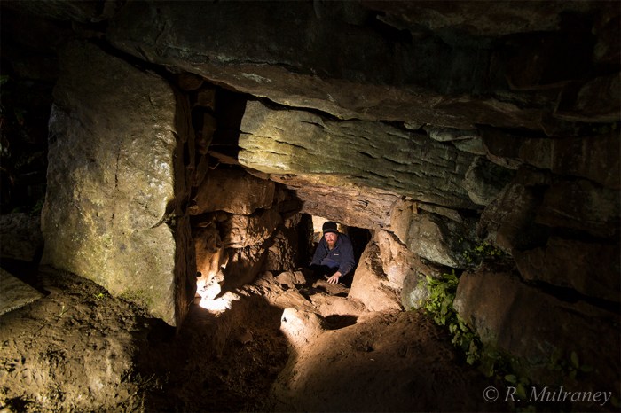 While not of great speleological significance, Oweynagat (‘Cave of the Cats’) I would argue, is one of the most intriguing archaeological monuments in Ireland. Today it feels hidden away and out of sight located, as it is, essentially in the ditch of a modern field boundary. However, as a cave feature it is situated in one the most karstic regions of Ireland (that is, in County Roscommon). As an archaeological monument it forms part of a complex of 50 archaeological monuments that make up the ancient pre-Christian Connaught royal site of Cruachán. It is therefore of special importance as a cultural adaptation of a natural geological feature.