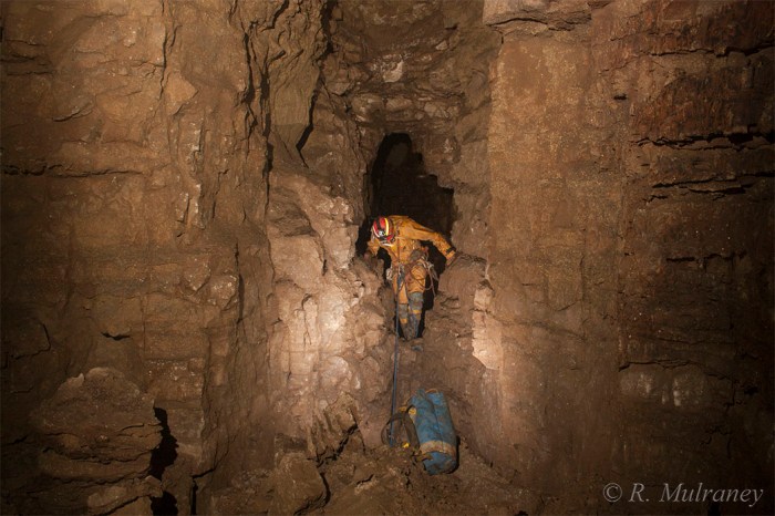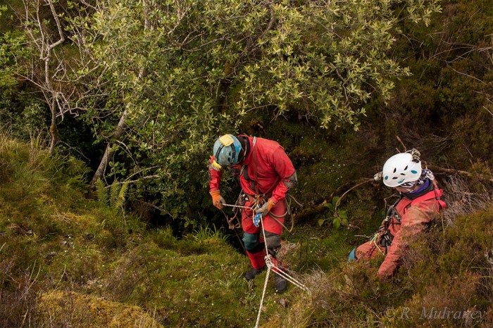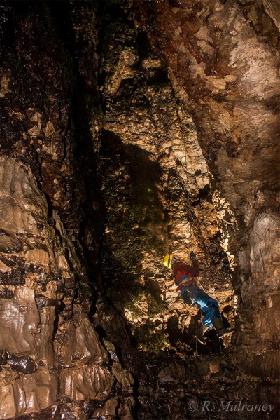 It is, likewise, a much overlooked pothole and appears to have been last explored at least 20 years ago, or perhaps many more. Suffice to say, it has seen few visitors, being first descended in the 1950s and 1960s by British speleologists. (YRC Committee 1954, Batty, J.F. 1960). There was certainly a visit by Dónal Gilhoys’s Irish Speleological Association, possibly in the 1970s, as the group left the initials ‘ISA’ painted on a wall between the first and second pitch. Despite this they left no other record that I know of.