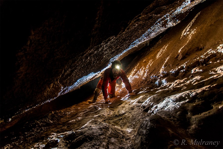 Pollskeheenarinky Cave is one of three fantastic caves found in South Tipperary, close to the Cork border. The most famous of these caves, Mitchelstown Cave is Ireland’s oldest show cave while the other, Old Desmond, is a short but impressive sized cave with many beautiful formations. ‘Rinky itself, feels much more like a complicated sporting cave and is, essentially, a series of large abandoned chambers connected by a number of muddy crawls.