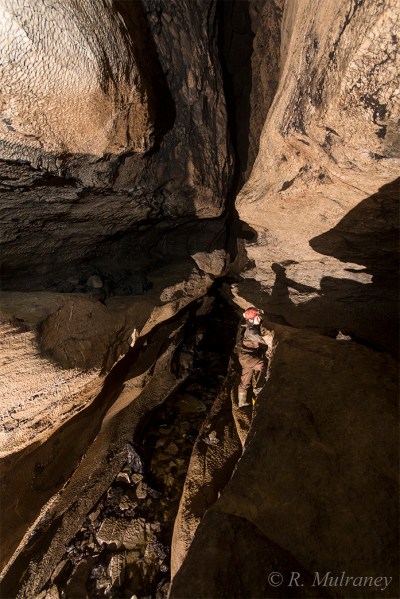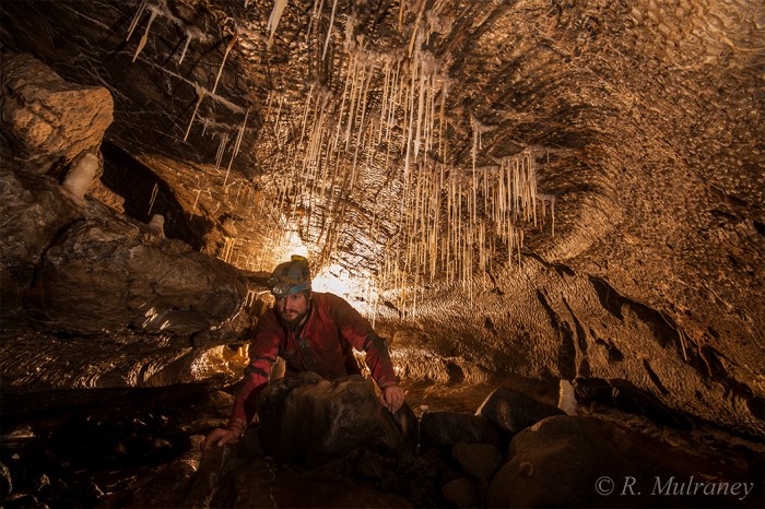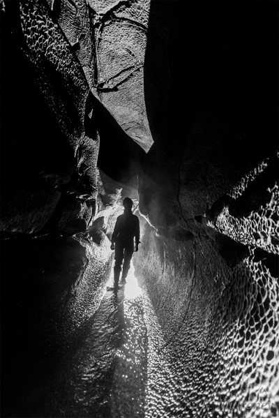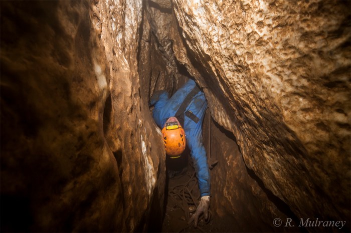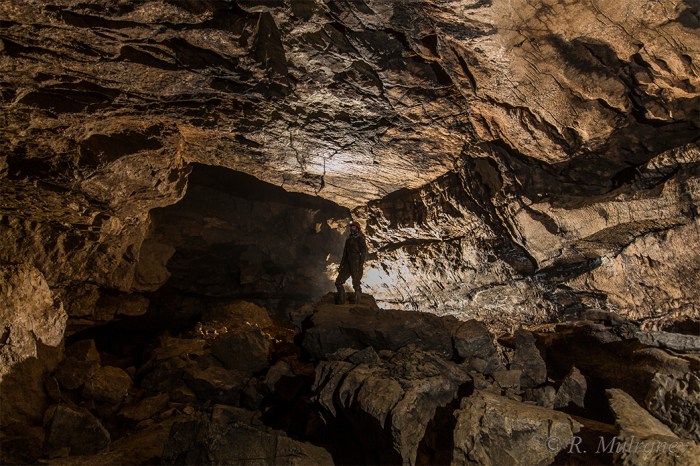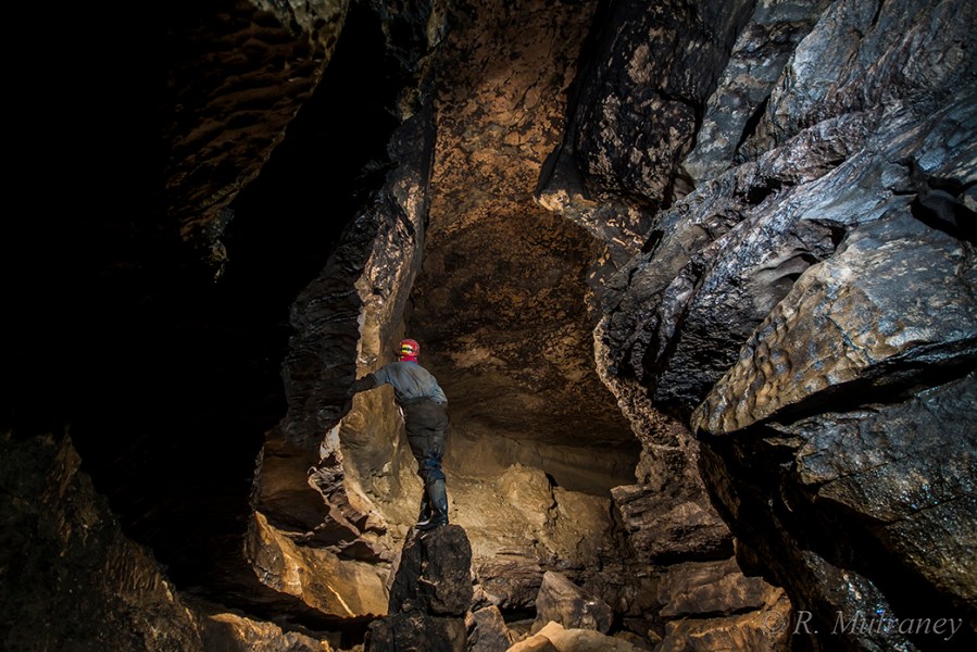 The open spacious streamway meanders throughout Shannon Cave, making for some extremely pleasant caving, but is interrupted regularly by boulder collapses which can make route-finding somewhat tricky in places. The most severe of these, and quite likely the most severe in all of Ireland, is George’s Choke.