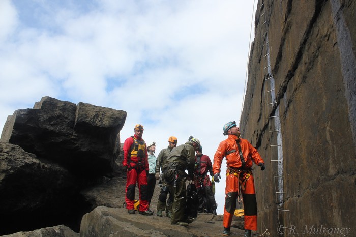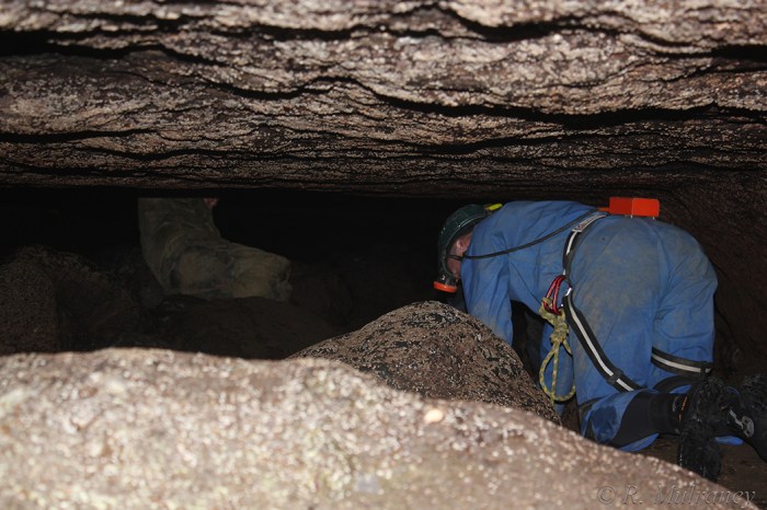 Urchin Cave is a short sea cave on the edge of the Burren near to Doolin town. A short descent down a sheer limestone slab takes you to a low crawl and a small chamber which is dry at low tide.